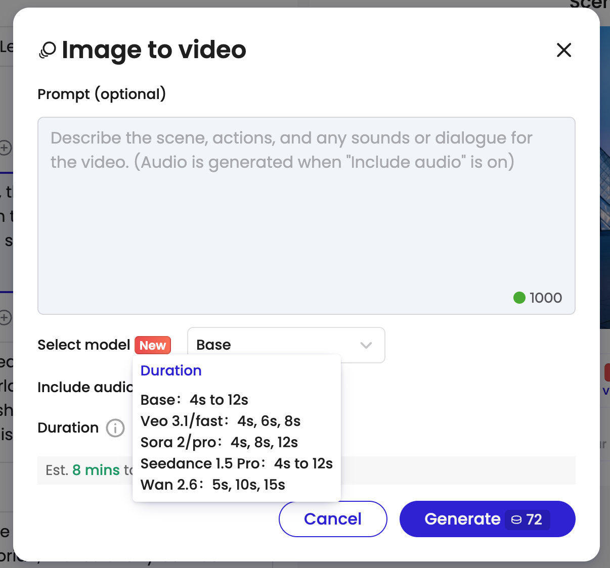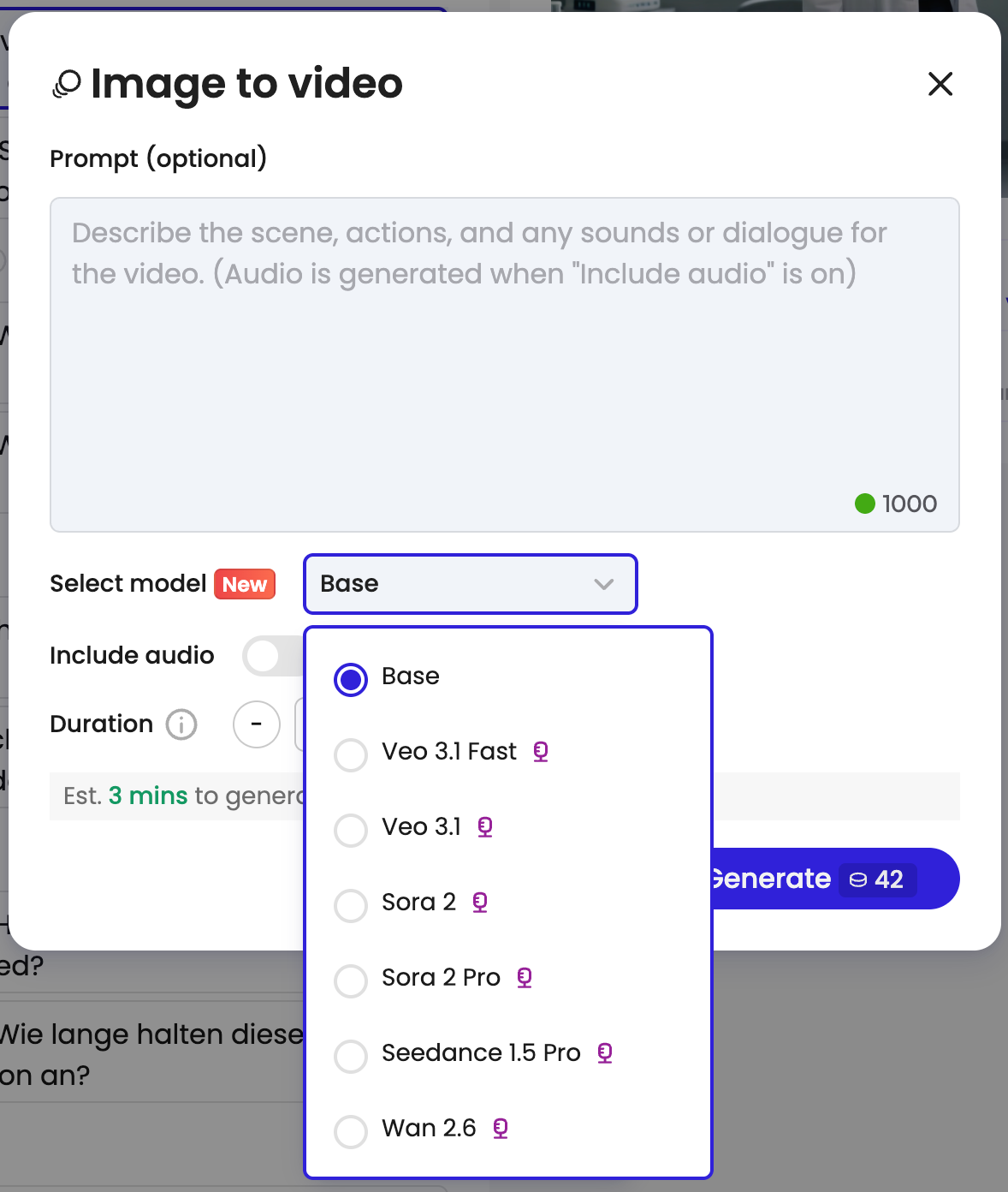 Absolutely. If your selected video model does not support audio-visual generation, you can easily add sound afterward using Voiceover. This allows you to generate high-quality narration or speech on top of your finished video.