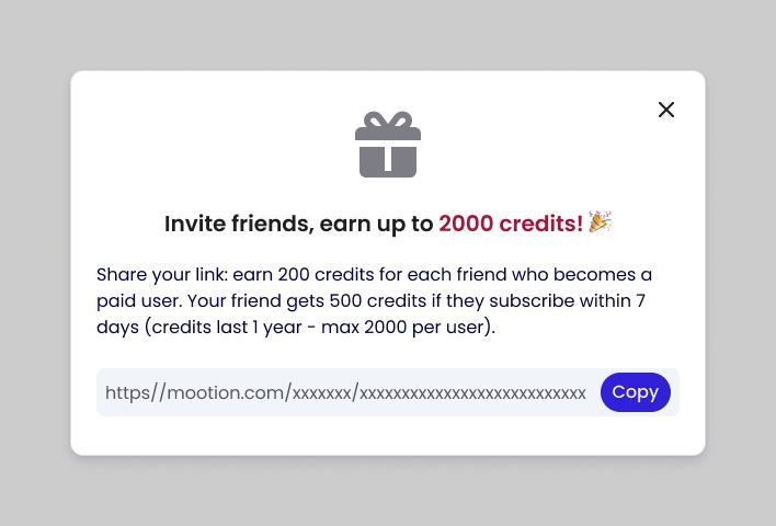 - Refer friends to Mootion using your referral link to earn extra credits.