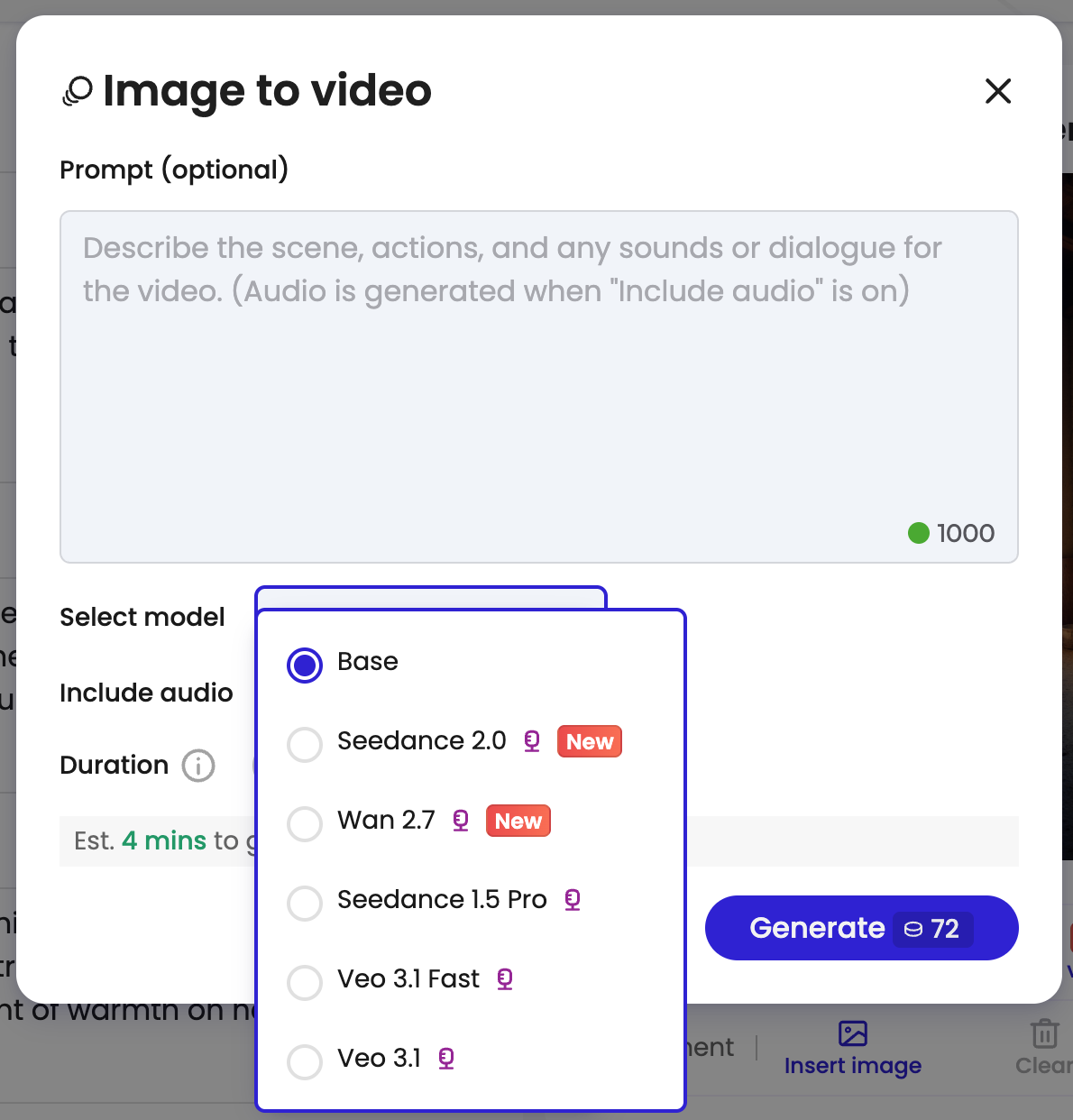 Absolutely. If your selected video model does not support audio-visual generation, you can easily add sound afterward using Voiceover. This allows you to generate high-quality narration or speech on top of your finished video.